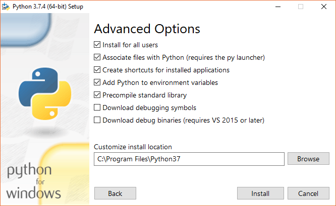 Python 3.7.4 (tags/v3.7.4:e09359112e, Jul 8 2019, 20:34:20) [MSC v.1916 64 bit (AMD64)] on win32